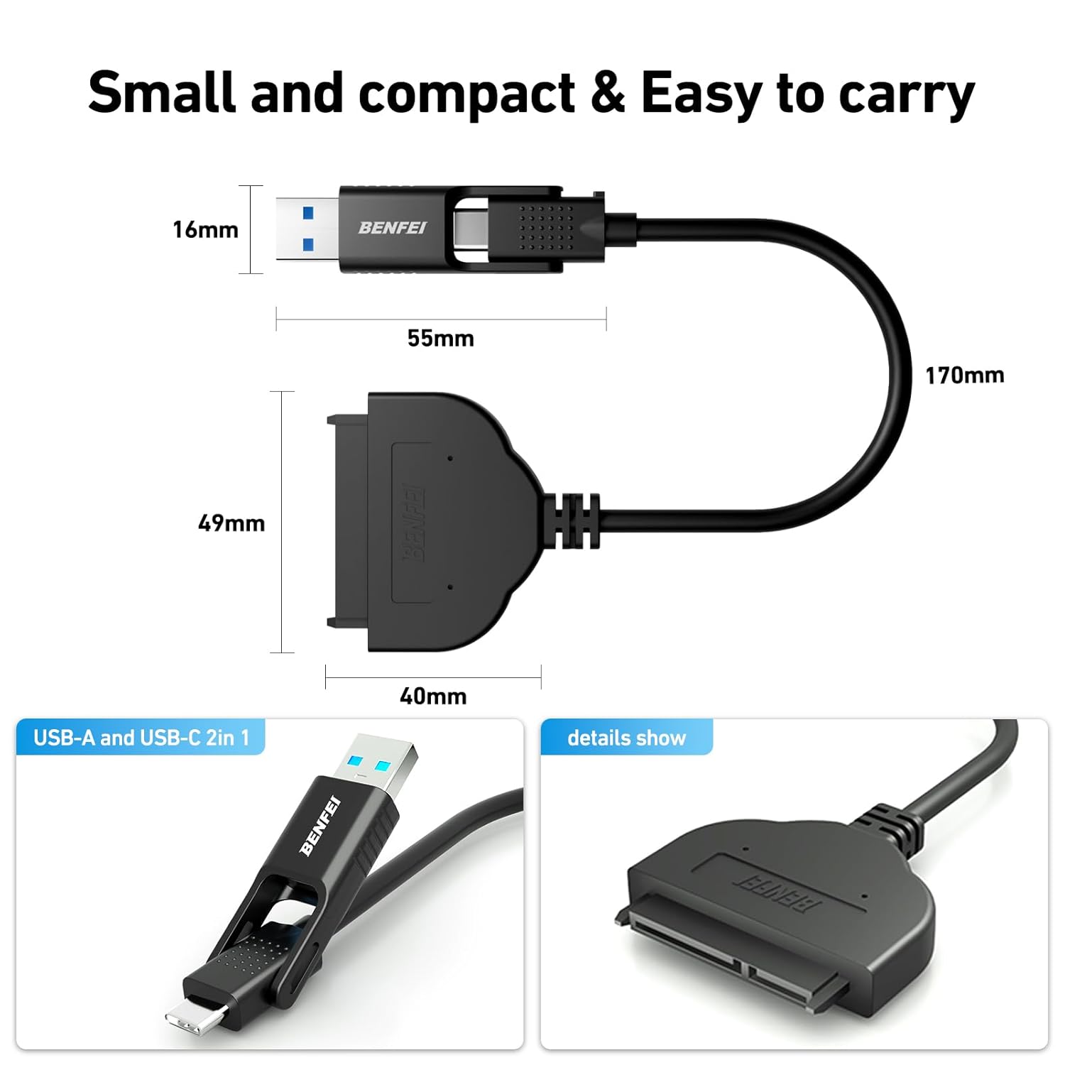 Adaptador USB C/USB 3.0 a SATA III 2 en 1 de BENFEI