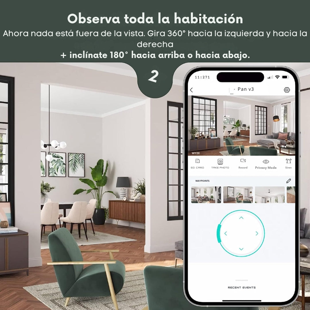- Seguimiento de movimiento giratorio: WYZE Cam Pan gira 360° para seguir y grabar objetos en movimiento, personas o mascotas para que nunca te pierdas ni un momento.